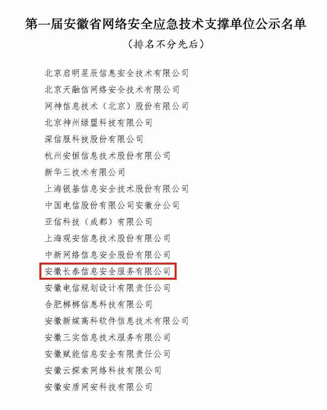 喜讯!长泰成功入选“第一届安徽省网络安全应急技术支撑单位”